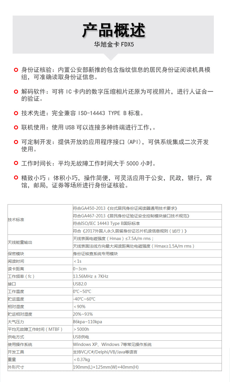 (*由于產品升級或其他原因,華旭身份證閱讀器產品實際參數有可能變更,以實際產品為準。本文中的所有陳述、信息和建議也不構成任何明示或暗示的擔保)