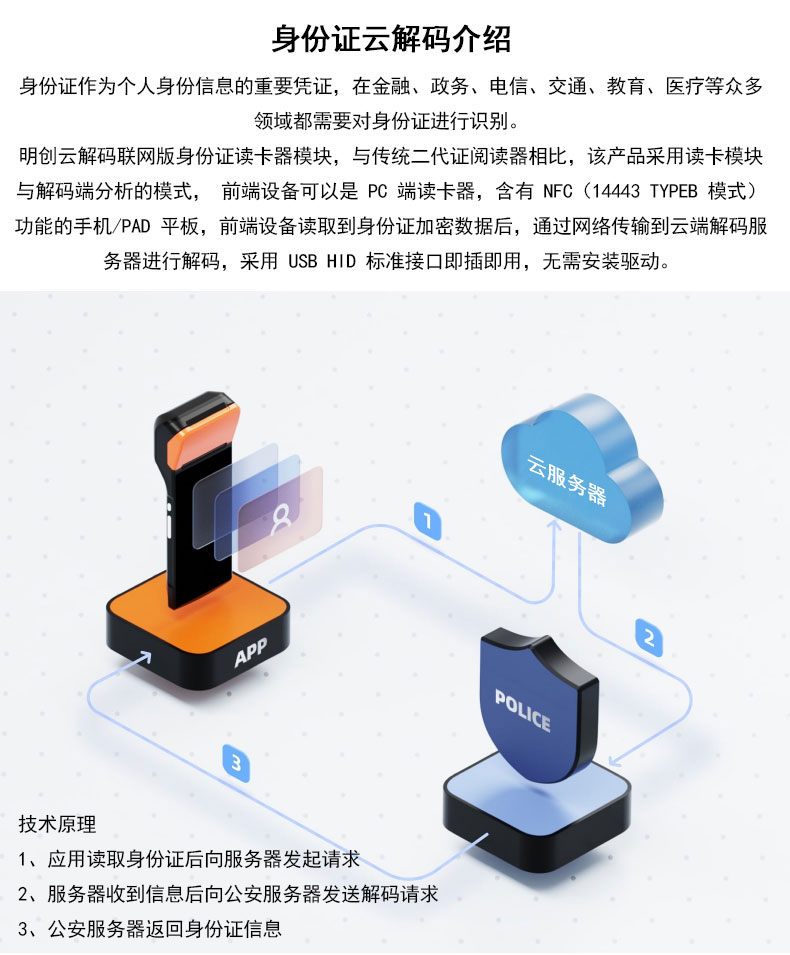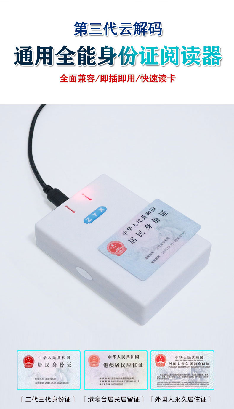 云解碼身份證讀卡器可以在線式的讀取身份證信息