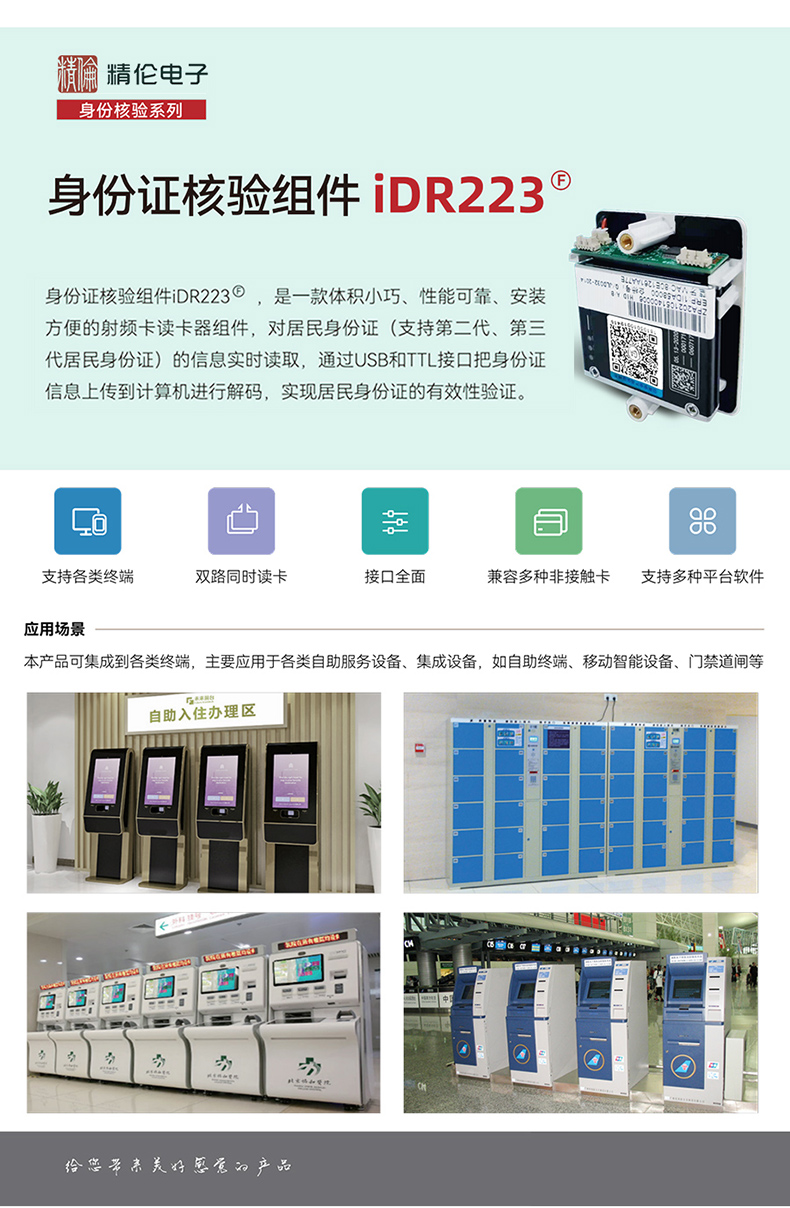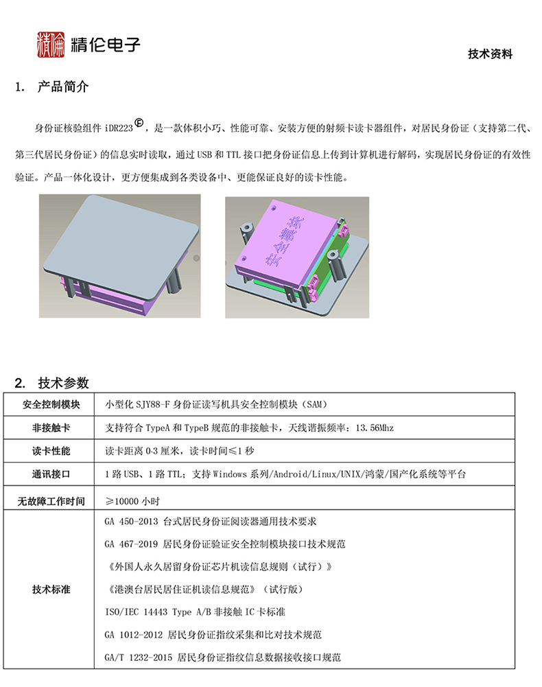 (*由于產(chǎn)品升級或其他原因,精倫IDR223身份證組件產(chǎn)品實(shí)際參數(shù)有可能變更,以實(shí)際產(chǎn)品為準(zhǔn)。本文中的所有陳述、信息和建議也不構(gòu)成任何明示或暗示的擔(dān)保)